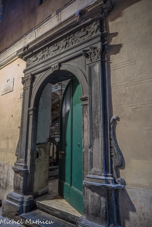 Église Santa Maria di Castello. Leonardo Riccomanno, portail de la sacristie.
