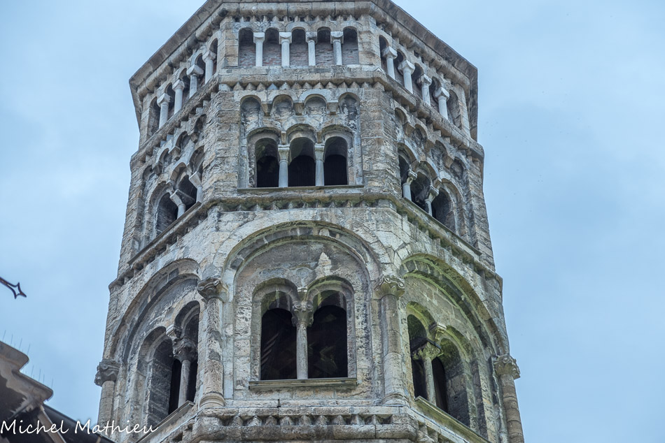 L'église San Donato. Son campanile octogonal (le terme plus approprié serait torre nolare, typique du style archaïque), orné de frises en dents de scie, décoré de bandes lombardes présente un double étage de fenêtres géminées et trilobées, couronné par une troisième rangée d'arcatures ajoutée durant les travaux de restauration d'Alfredo d'Andrade à la fin du XIXe siècle.