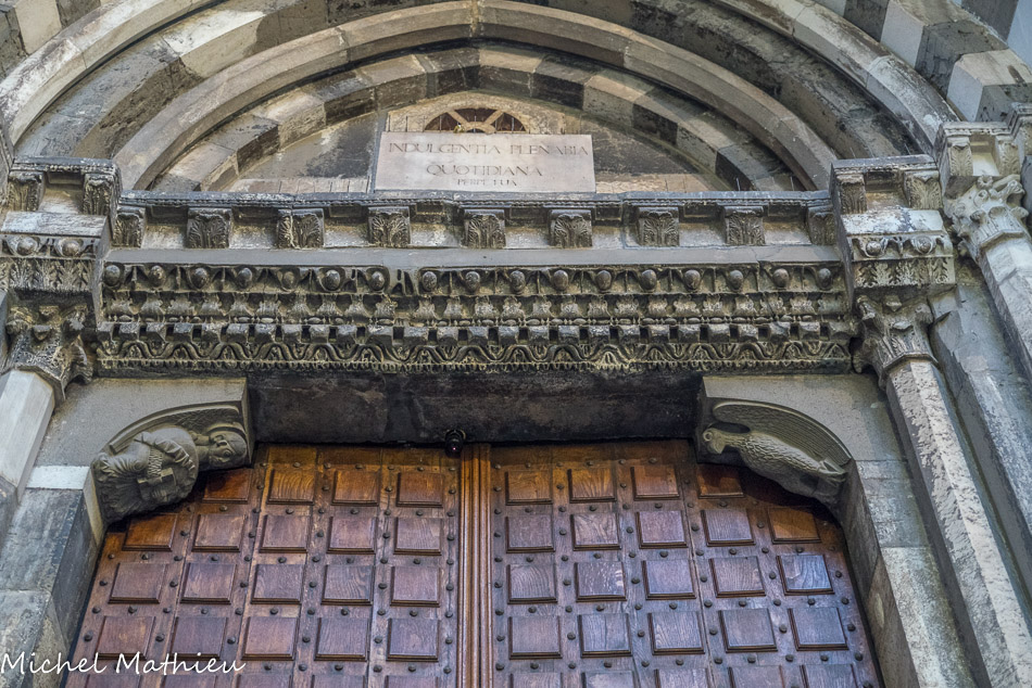 L'église San Donato. Le portail ébrasé et l'architrave roman.