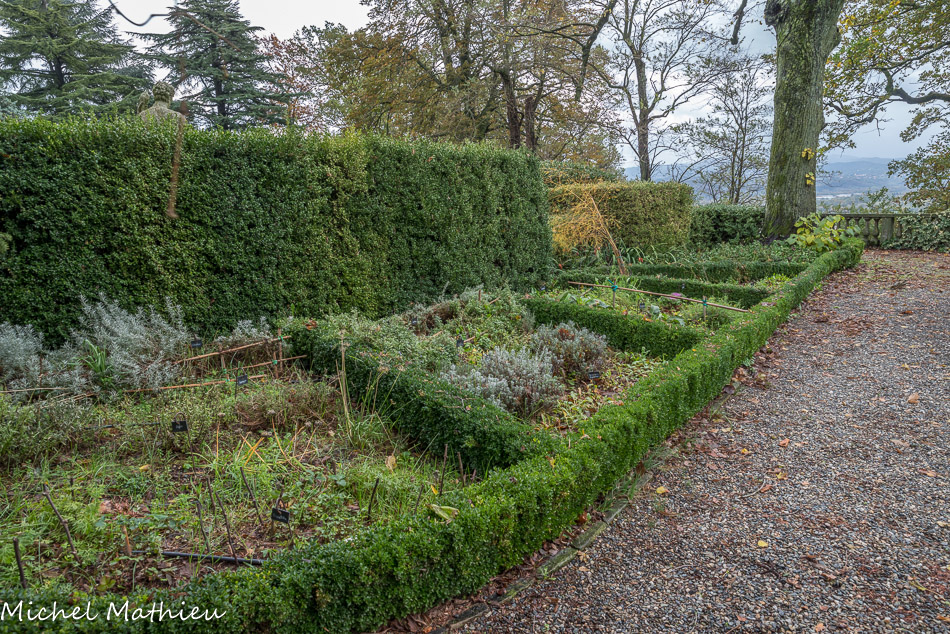 Château de Rocca Grimalda. Le Jardin à l’italienne. Très géométrique, il est la transitionentre le bâtiment et la nature.