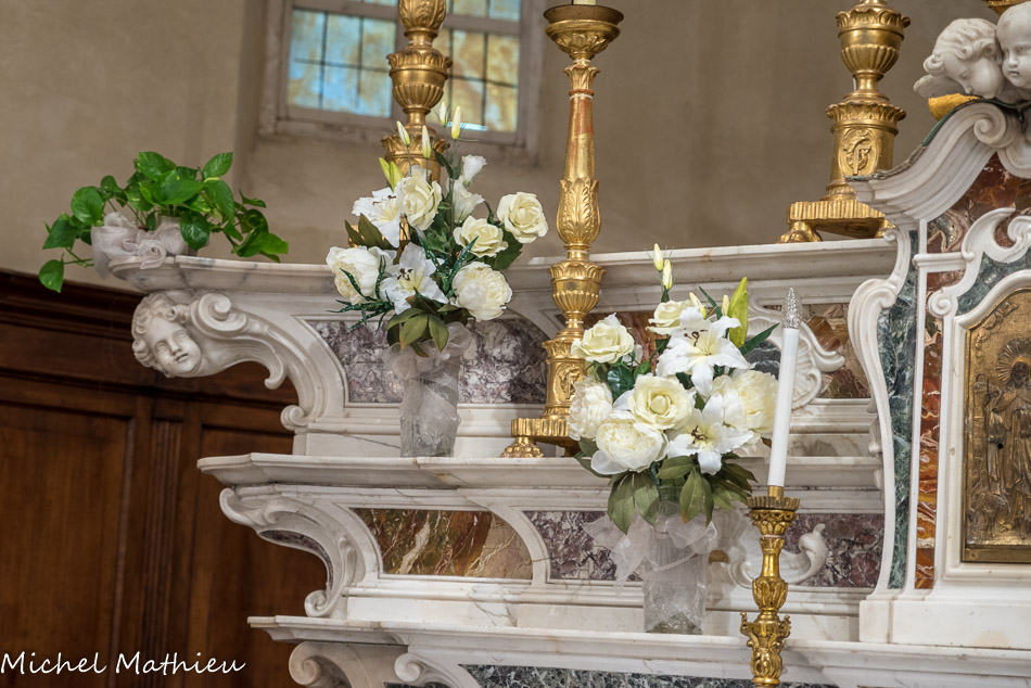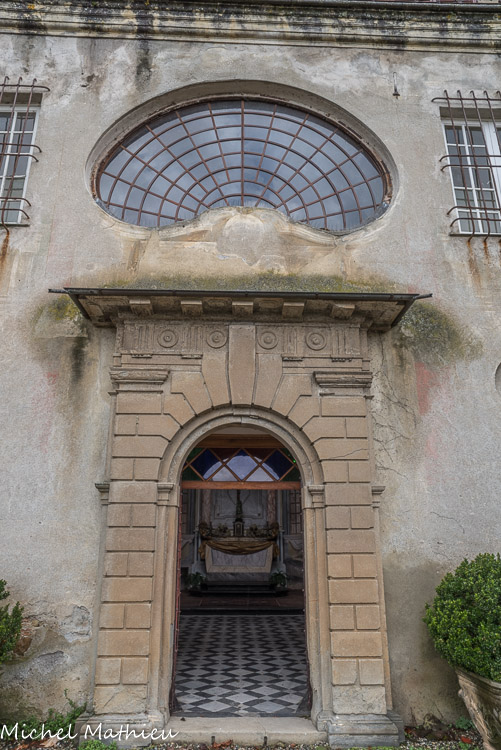 Château de Rocca Grimalda. La chapelle, construite à la base de l'aile ouest du château, a été commandée par Giovanni Battista Grimaldi III à la fin du XVIIIe siècle.