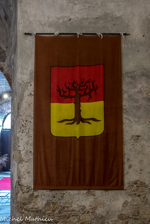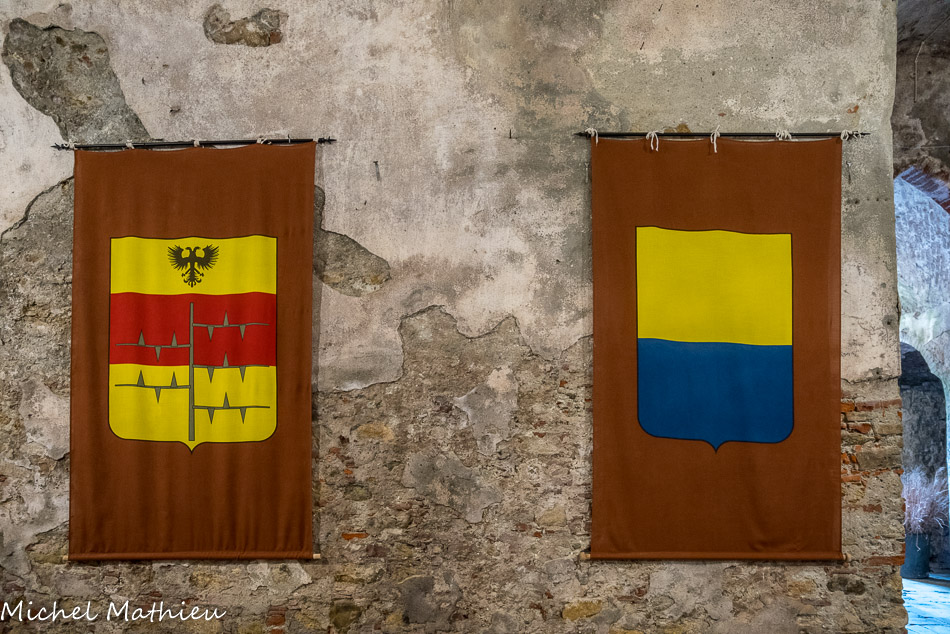 Château de Rocca Grimalda. Les caves. Les armoiries des différents propriétaires : celles des Del Bosco,