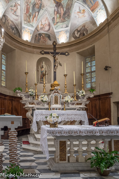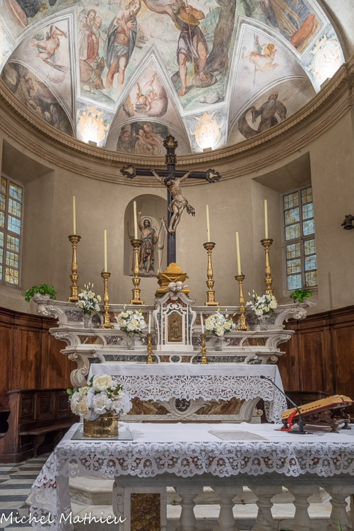 Lerma. Dans la cuvette de l'abside, on peut voir des fresques de Giulio Benso (1592-1668), élève de Giovanni Battista Paggi.