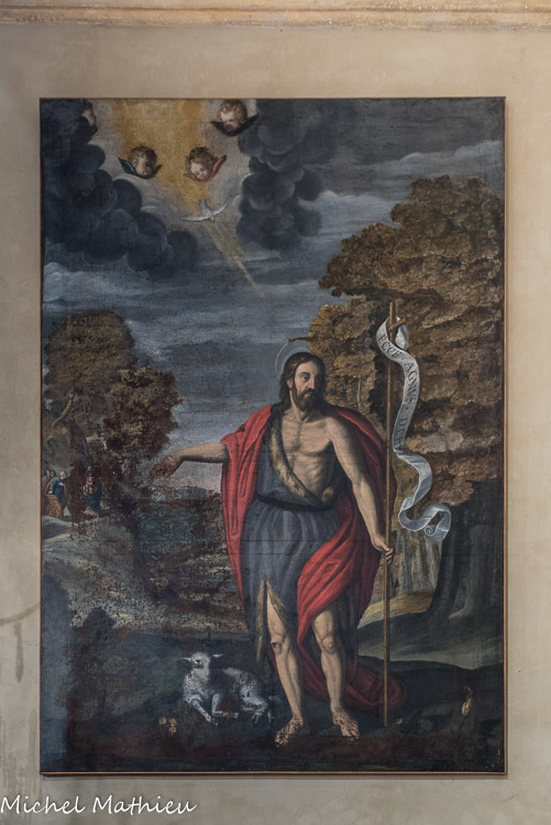 Lerma. Lerma. Tableau représentant saint Jean-Baptiste, patron de la paroisse, XVIIe, auteur inconnu. Le cadre en bois poli coloré en jaunele fait dater probablement du début du XVIIe