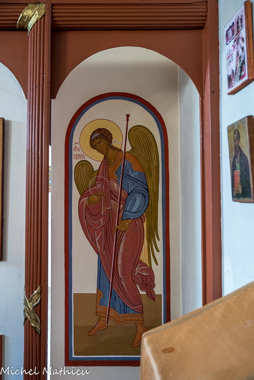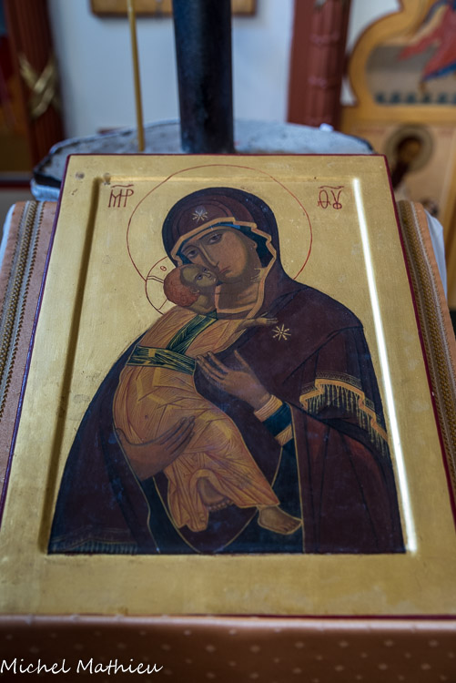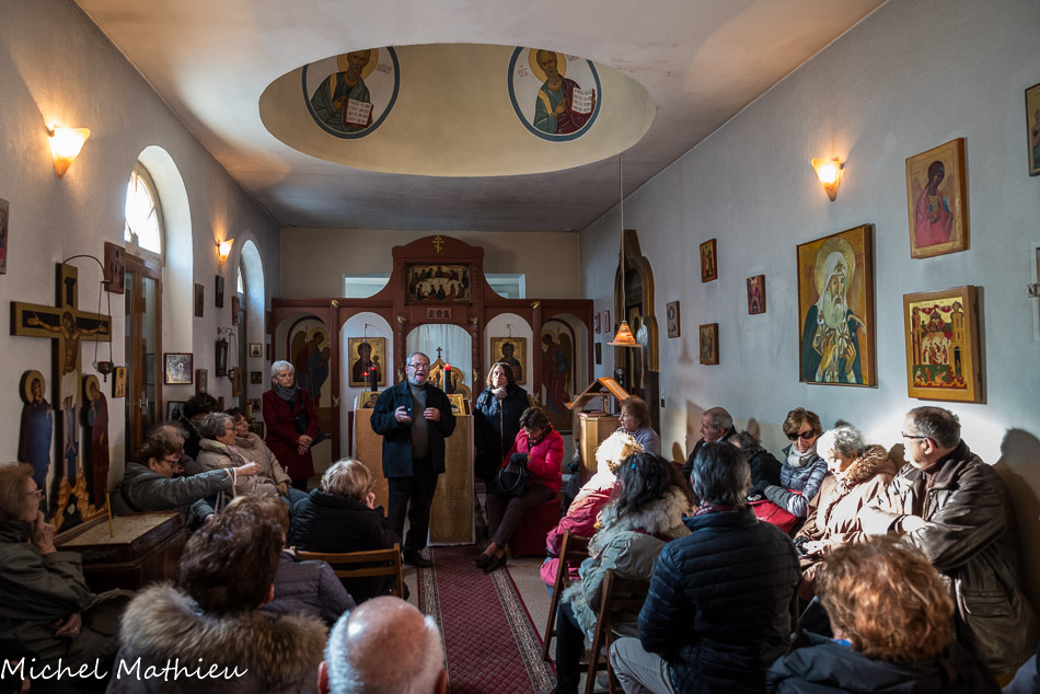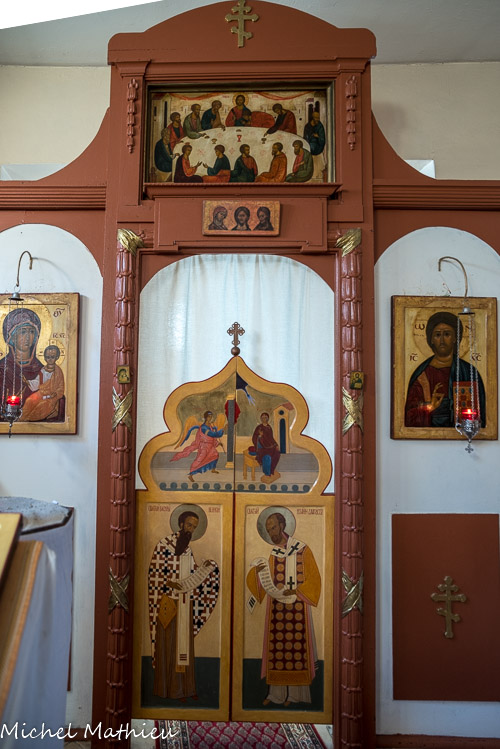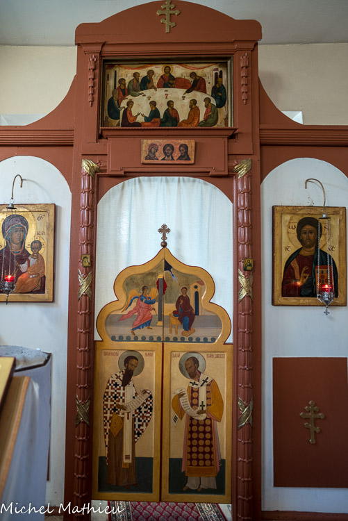 Les premiers paroissiens ont eux-mêmes transformé en église orthodoxe le petit bâtiment (ancien octroi de la ville), concédé à la communauté russe par la municipalité. Ils y ont édifié un petit bulbe, surmonté d'une croix, une coupole intérieure, une iconostase dont les portes ouvrent sur le sanctuaire.