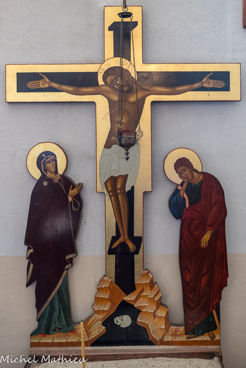 L'iconostase. Le premier « art figuratif chrétien » se rencontre d'abord dans les catacombes de Rome. Il s'agissait d'un art de la clandestinité, crypté, à valeur symbolique. La tradition orthodoxe attribue les premières icônes de la Vierge Marie à l'Evangéliste saint Luc. Il en aurait peint trois après la Pentecôte, qui auraient servi de prototypes par la suite. Vers les IVe et Ve siècles, à partir de la paix constantinienne, l'icône connaît une réelle floraison. Elle veut présenter l'exemple de saints personnages, en garder la mémoire, illustrer les principaux événements de l'Ancien et du Nouveau Testament. À partir du milieu du VIe siècle, dans le cadre d'un empire désormais christianisé, l'icône se répand dans la piété populaire. À cette époque apparaissent les légendes sur les icônes d'origine miraculeuse ou apostolique. Lorsque, en 726, l'empereur byzantinLéon III prend position contre le culte des images (ou icônes,) il suscite l'indignation à travers tout l'empire. Ainsi naît l'iconoclasme, mais le pape Grégoire II, ne l'approuve pas. Jean Damascène prend la défense de images. Il défend la thèse suivant laquelle si les artistes chrétiens font des images de Dieu incarné, ayant vécu avec les hommes et assumé leur nature, l'ancienne interdiction de l'ancien Testament est abolie grâce à l'Incarnation qui change la relation entre Créateur et créatures. À la mort de Léon IV, en 780, son épouse Irène assuma la régence. Iconophile, elle convoque le Deuxième concile de Nicée, en 787, afin d'annuler les décisions du concile de Hiéreia de 754. Le culte des images fut restauré. Il faut distinguer l'image, objet de vénération relative, avec l'adoration réservée à Dieu seul.