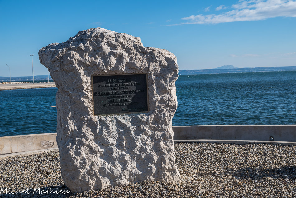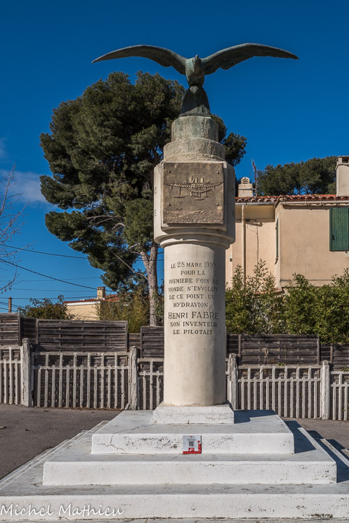 Le 28 mars 1910, en France, près de Martigues , au bord de l'étang de Berre, face au village de la Mède, Henri Fabre fit décoller son hydravion devant un public nombreux dans lequel se trouvait l'aviateur Louis Paulhan. L'appareil parcourut 800 mètres au-dessus de l'étang et se posa sur l'eau : c'était le premier hydravion au monde à avoir décollé de manière autonome, réussi son vol et son amerrissage. Deux monuments commémorent cet événement du 28 mars 1910. Celui-ci fut inauguré en 1965, à Martigues, face au plan d'eau de l'amerrissage.
