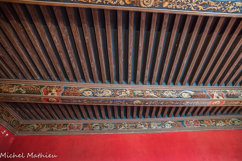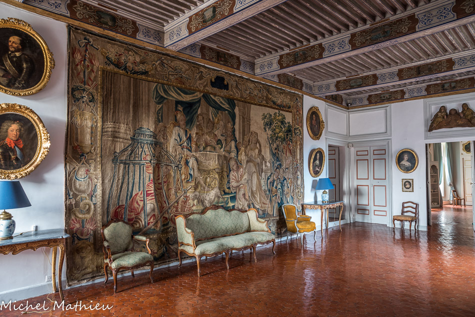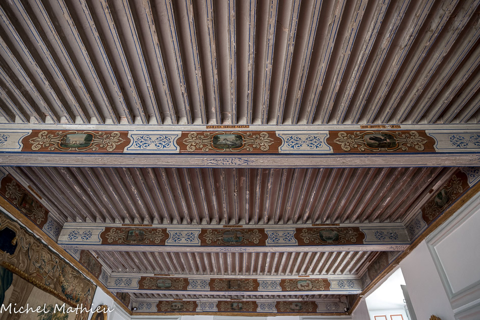 De superbes plafonds à la française Renaissance et XVIIème siècle font la renommée de ce château aux murs recouverts de tapisseries des Flandres, de Bruxelles et d’Aubusson.