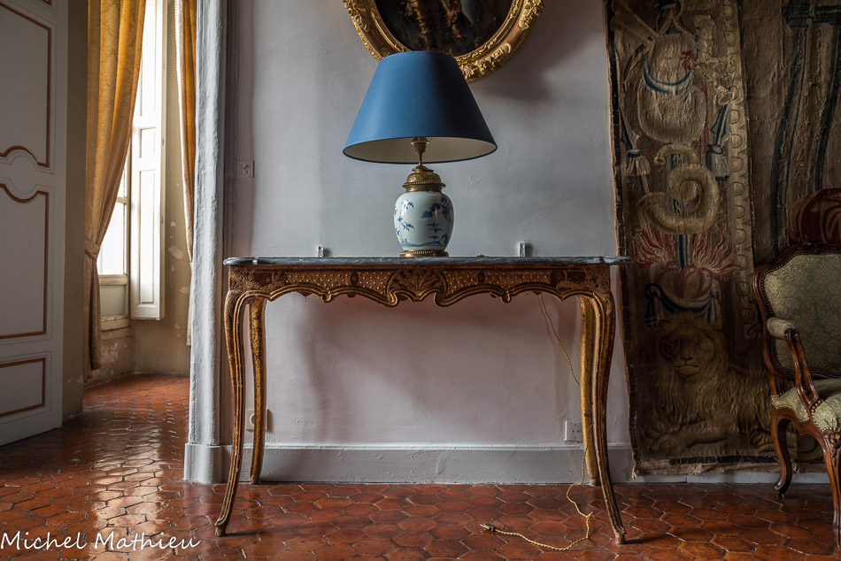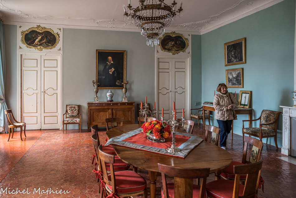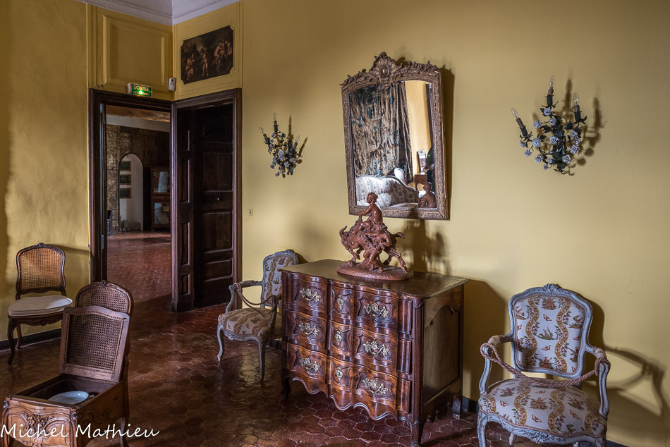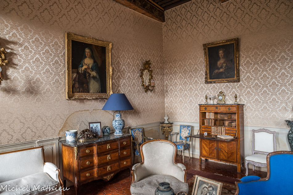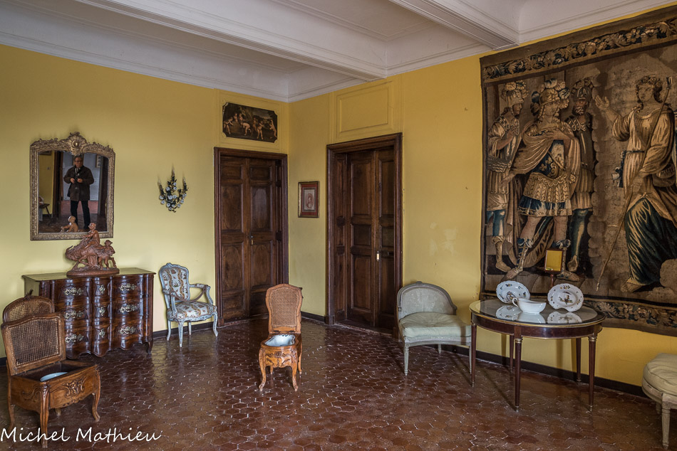 Le salon des réceptions où les invités étaient reçus. Dans les différentes pièces, il n'y a plus de cheminées, car elles furent détruites pendant la Révolution.