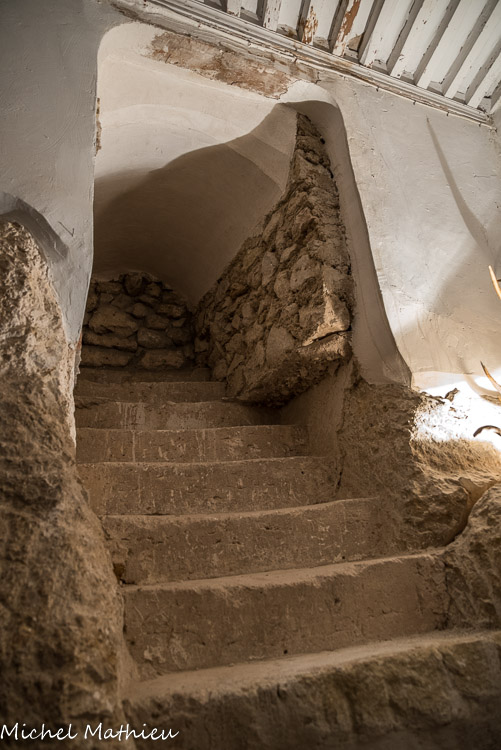 Montée vers les cachots, à gauche l'entrée de la salle des gardes.