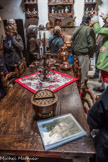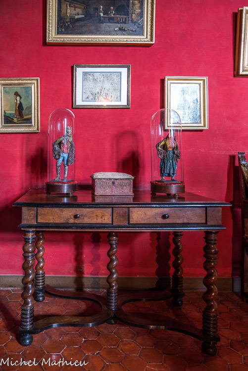 En décor, quelques santons de Naples du XVIIème siècle en papier mâché.
