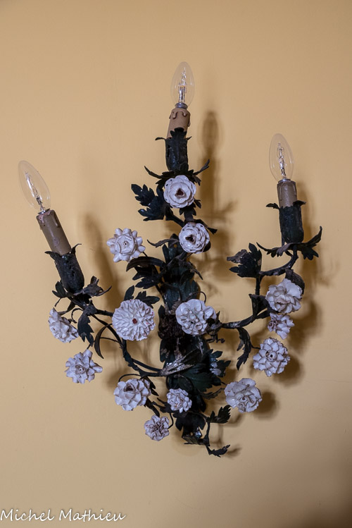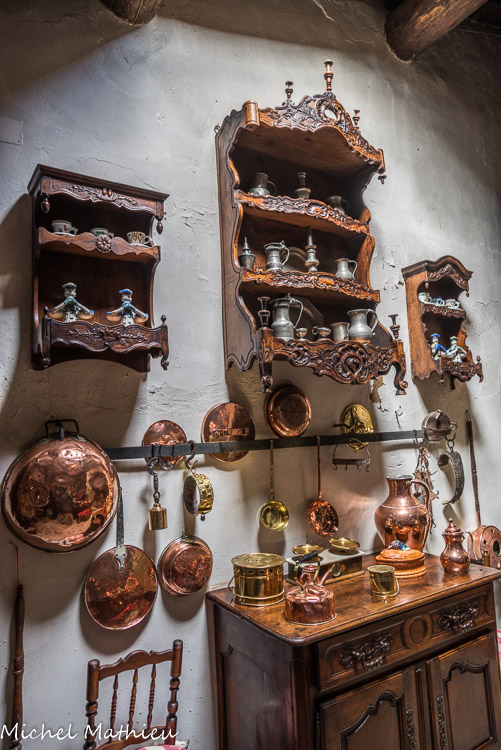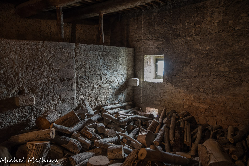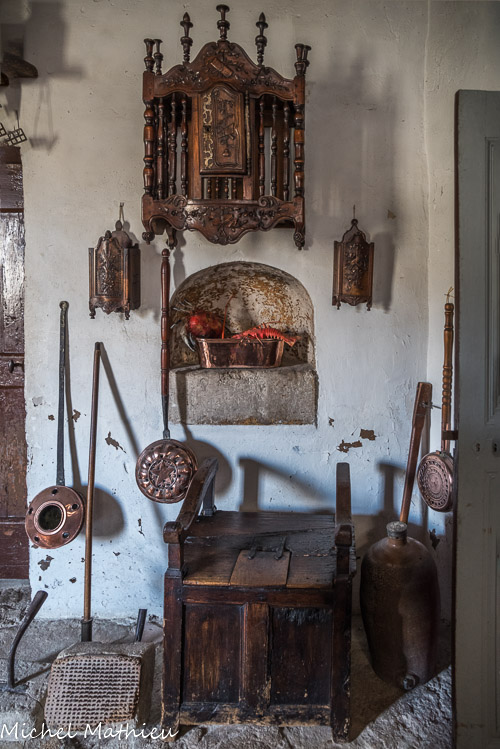 En haut, une panière, entourée par des petits bacs pour la farine. Sur le sol, une chaise qui servait de réserve à sel et surtout, lorsque les gabelous venaient faire payer la gabelle, la marquise s'asseyait dessus, et la politesse des gendarmes leur interdisait de la faire bouger.