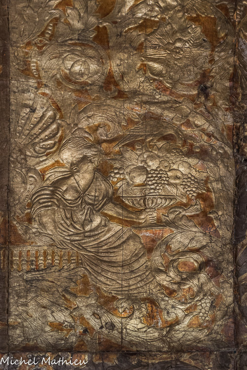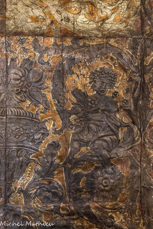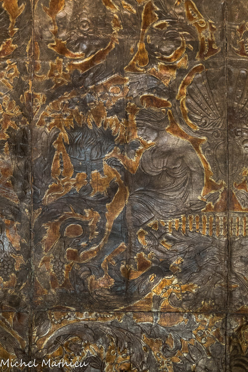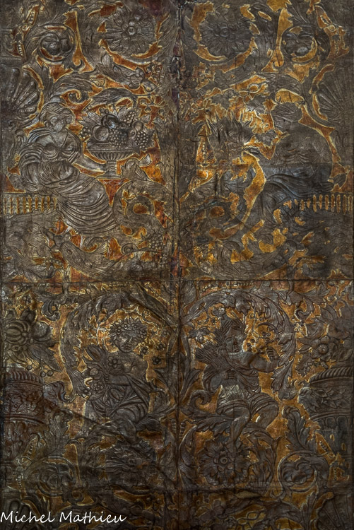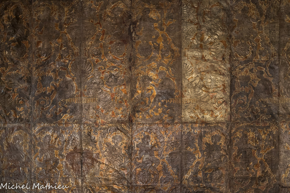 Une très grande pièce est recouverte de cuirs de Cordoue venant du château de Vauvenargues. Ils étaient voués à la destruction et pour les sauver, ils ont été donnés à la famille Forbin qui a bâti cette pièce à leur seule mise en valeur. Ces cuirs très rares dits «dorés polychromes» furent commandés en 1680 à un artisan aixois. Le plafond à la française n'est pas peint car ce n'est pas un pièce à vivre.