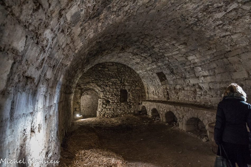 La salle des gardes. On y voit encore les arches qui permettaient de poser un plancher. Sous ce plancher en bois était enfoui de la paille qui servait d'isolant pour le froid.