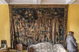 La tapisserie représente Clovis. Sur la table, un bourdaloue.