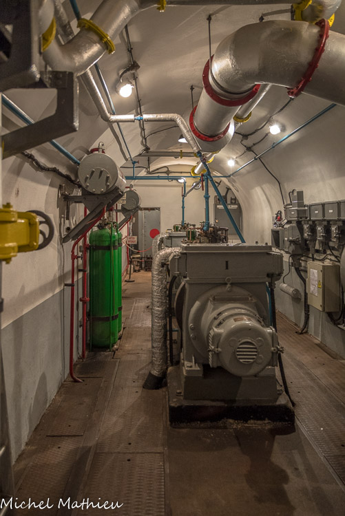 Le petit ouvrage de la Frassinéa. Sur le mur, sont bien visibles les deux bouteilles vertes d'air comprimé de démarrage des moteurs et la réserve journalière de gazole du groupe n°1 (en haut).