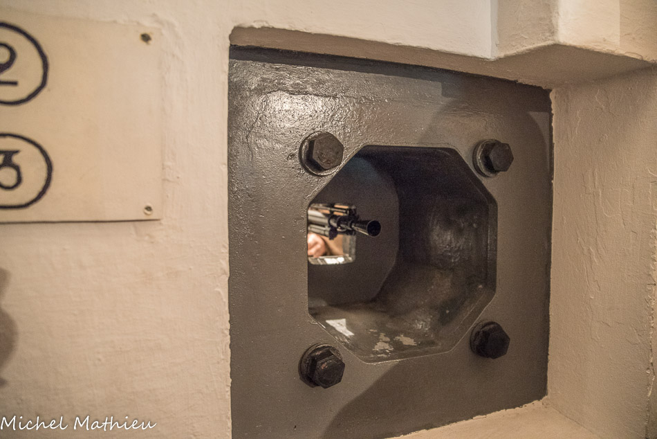Le petit ouvrage de la Frassinéa. Créneau du canon, ici occupé par deux mitrailleuses jumelées, avec au centre la lunette de visée.