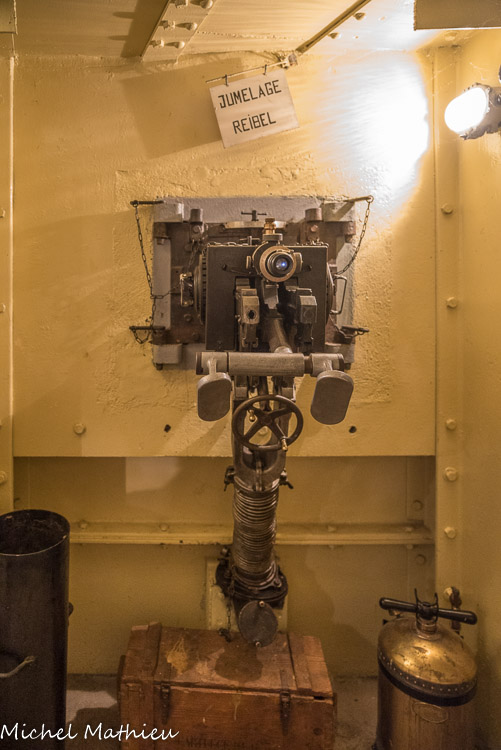 Le petit ouvrage de la Frassinéa. Le canon est remplacé par un JM (mitrailleuses jumelées). Jumelage complet (Support, mitrailleuses avec chargeurs «camembert», collecteur de douilles vides conduites dans le fossé, lunette de visée et, sur la gauche, réservoir à eau de refroidissement des armes). Dans la fortification CORF, les mitrailleuses MAC 31 (ou mitrailleuses Reibel, du nom du colonel qui la fit mettre au point) sont toujours jumelées (par deux sur le même support) ce qui permet de tirer avec l'une pendant que l'autre refroidit et qu'un pourvoyeur la recharge.