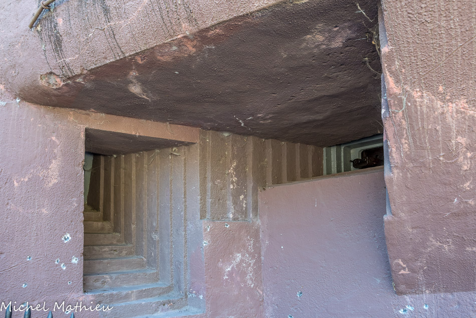 Le petit ouvrage de la Frassinéa. A droite, créneau de deux mitrailleuses jumelées. A gauche, créneau de FM pour couvrir l'angle mort.
