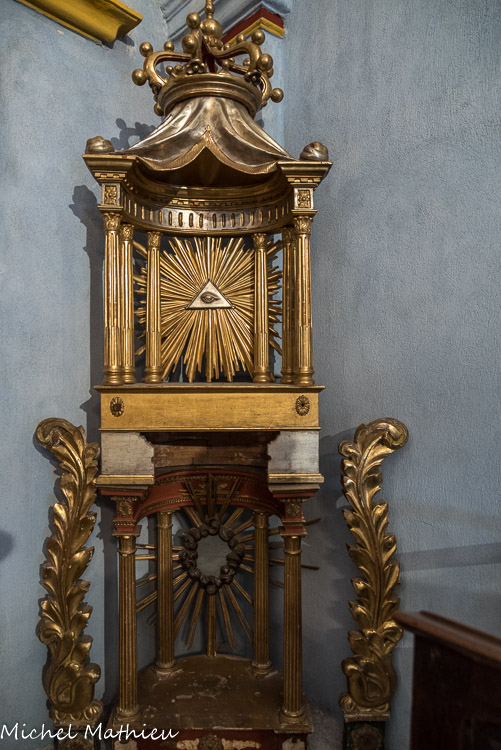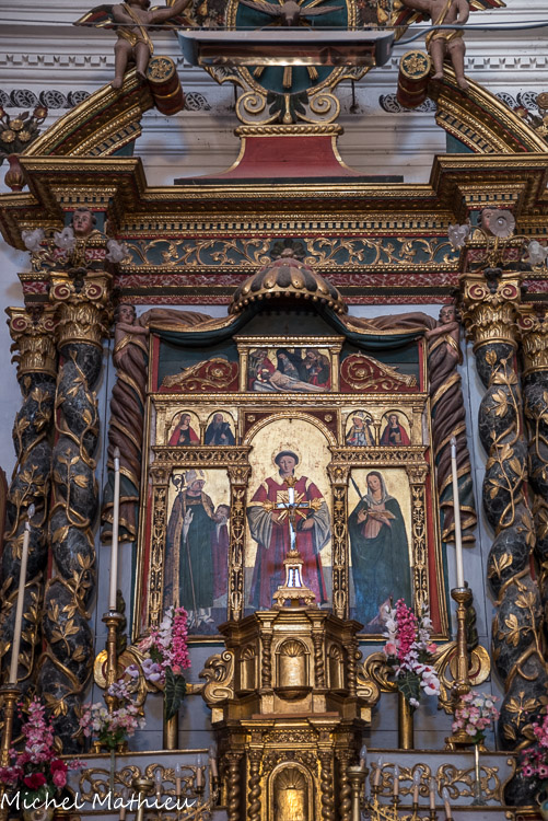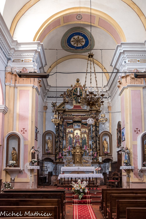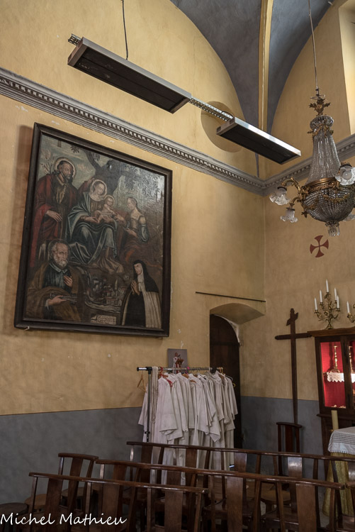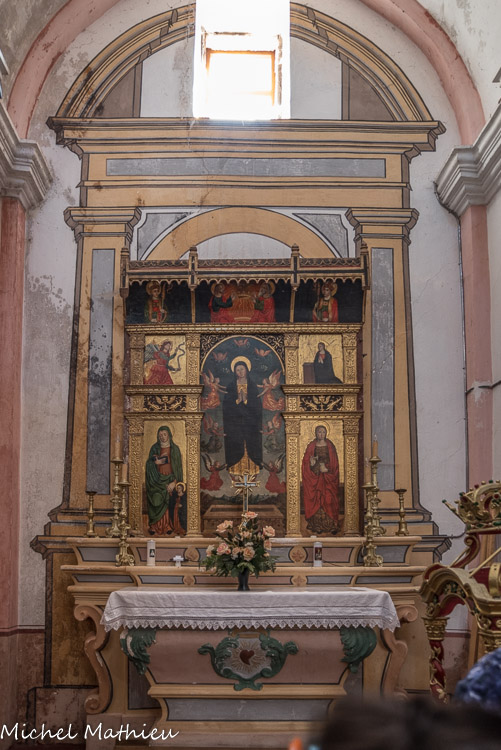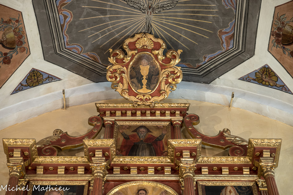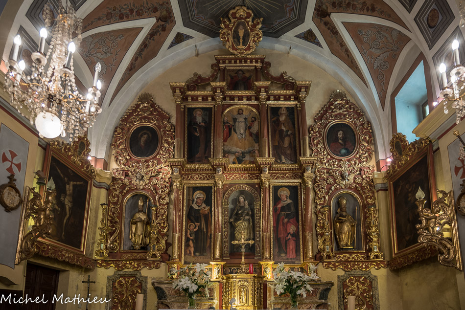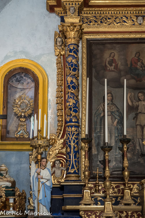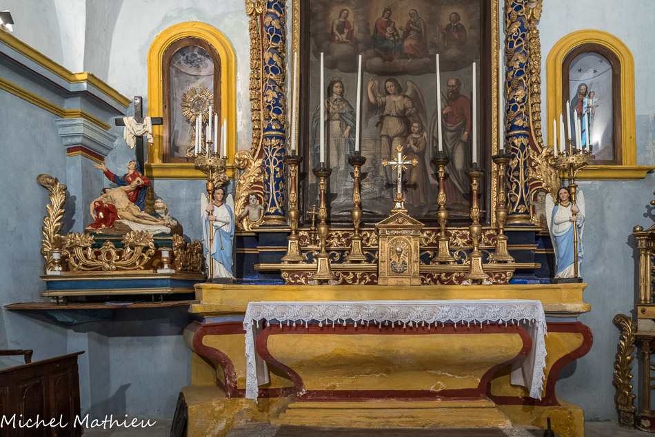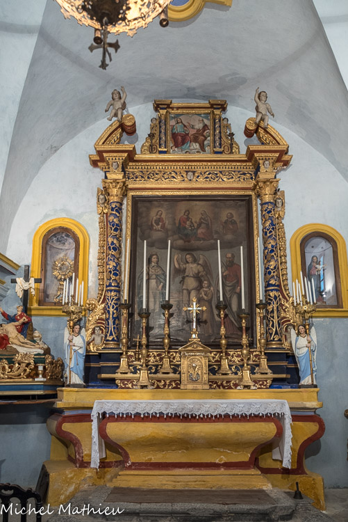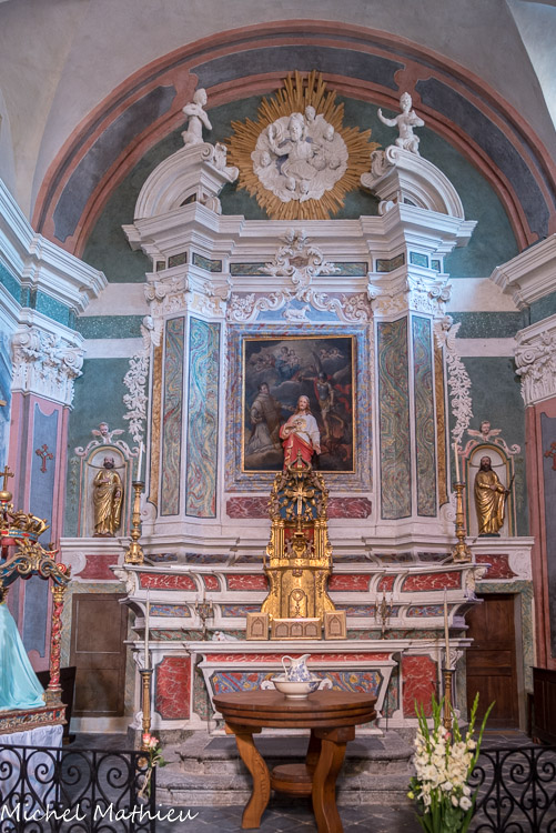 Roure. Le maître-autel est daté de 1741. Des colonnes torses ornent un imposant tabernacle doré. A gauche, une statue de St Pierre, provenant de l’ancienne chapelle des Pénitents (mairie actuelle), à droite, St Joseph.