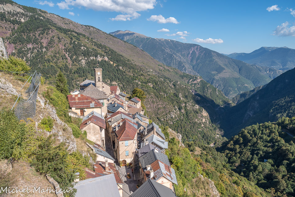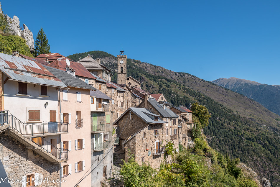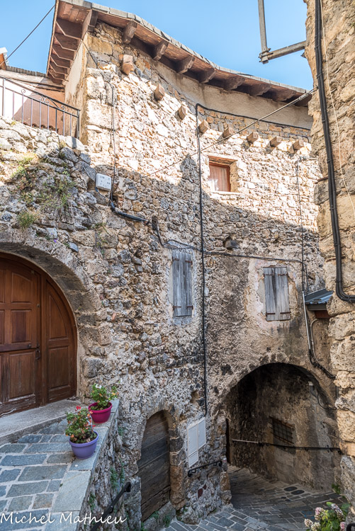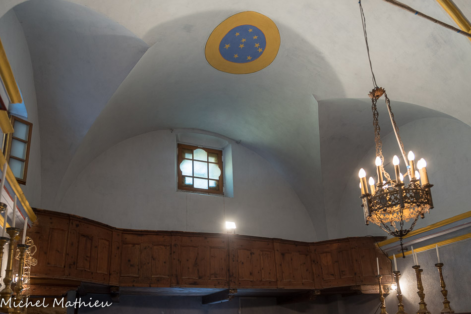 Saint-Sauveur-sur-Tinée Chapelle des pénitents blancs. L'édifice est modeste de plan comme d'élévation, correspondant ainsi à l'usage auquel il était dévolu : oratoire de la confrérie laïque des pénitents où se regroupaient les hommes du village pour la célébration d'offices chantés, pour l'organisation de processions et pour la gestion de services collectifs (funérailles et Mont de Piété).