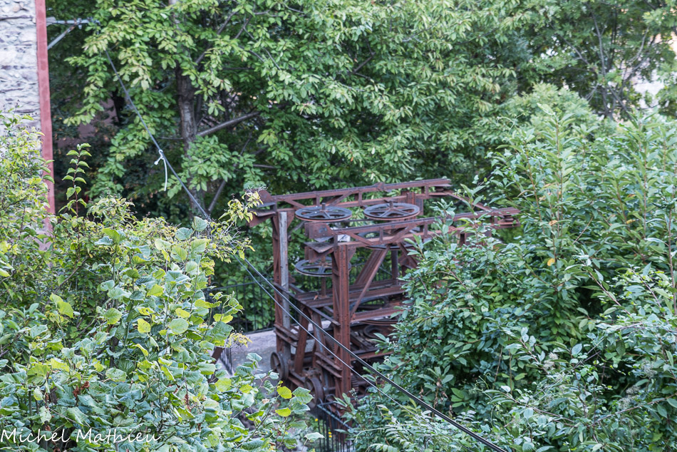 Roure. La machinerie de fer du téléphérique de 1927 qui a longtemps servi à acheminer le lait jusque dans la vallée, à la coopérative de Saint Sauveur, car ce n’est qu’en 1935 que la route atteint la place de l’église.